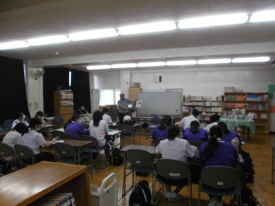 「ますは自分の身を守る。」その次に、「自分にできることを考える。」「地域の人々のために協力する。」自分のいのちを守る行動をとることの重要性がよくわかるお話でした。ご指導いただき、有難うございました。